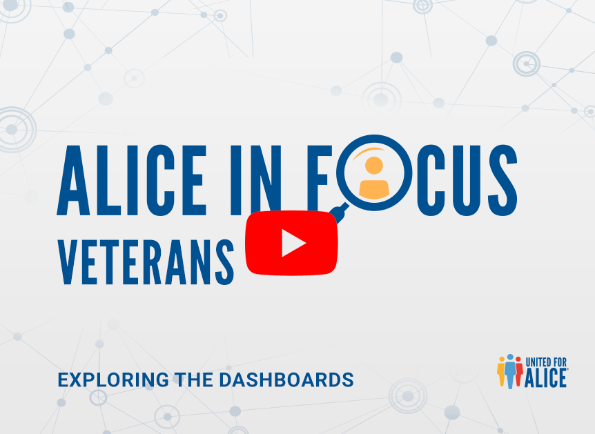Members of the following committees advised in the creation and presentation of materials for ALICE in Focus: Veterans. Committee members represent a range of organizations including academic institutions, advocacy groups, research organizations, and government agencies, and were invited to participate based on their expertise in issues related to veterans and financial hardship.