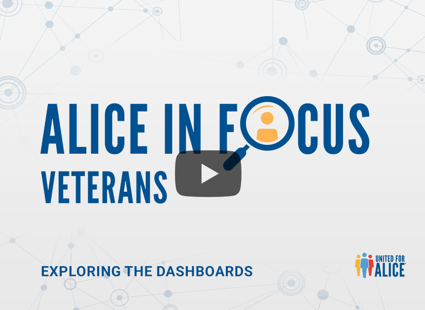 According to the outdated Federal Poverty Level (FPL), 6% of veterans in the U.S. lived in poverty in 2019. But United For ALICE data shows that another 21% — more than three times as many — were also struggling, in households that earned above the FPL but less than what it costs to afford the basics. These households are ALICE: Asset Limited, Income Constrained, Employed.
