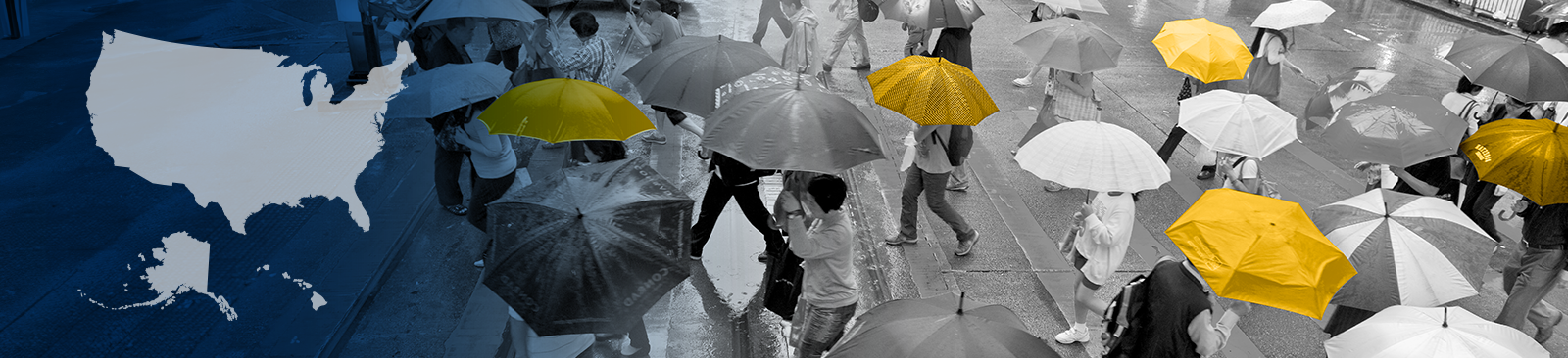 An overhead view of a small crowd crossing a street at a crosswalk, representing ALICE. Data markers connecting the crosswalk lines symbolize the latest State of ALICE research.